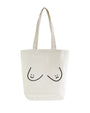 A cute canvas shopping bag featuring an original illustration of a pair of boobs with faces in place of the nipples. One boob is happy, one boob is sad.