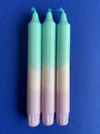 Each trio of candles is hand dipped in the Surrey Hills and every set is unique - the colour combination is always the same but the pattern may vary slightly.