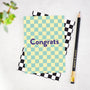This checkerboard congratulations card comes complete with a bespoke matching printed black and white checkerboard envelope.