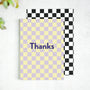 A fun checkerboard thank you card with the word 'Thanks' on the front.