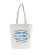 This natural canvas bag features the iconic Lumon Industries logo and the wording 'Please try to enjoy each fact equally'.